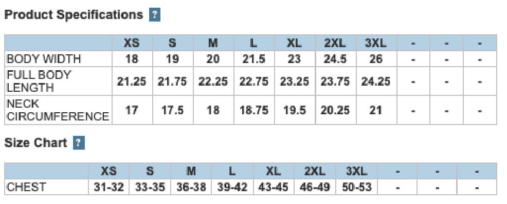- 2XL+$2.00, 3XL+$3.00