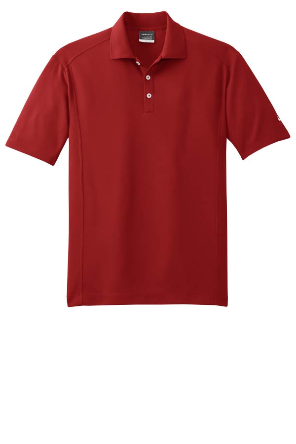 - The Dri-FIT fabric technology delivers superior moisture management, while the stitch-trimmed shoulder panels and gussets make a distinctive difference. Flat knit collar, three-button placket and open hem sleeves. Pearlized buttons are selected to complement the shirt color. The contrast Swoosh design trademark is embroidered on the left sleeve. Made of 4.7-ounce, 100% polyester Dri-FIT fabric.