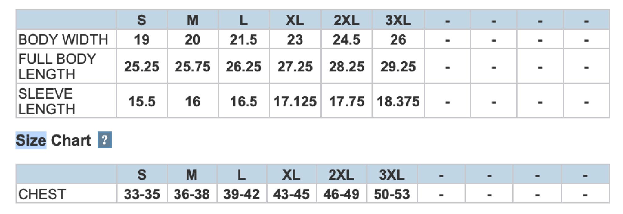 - 2XL+$2.00, 3XL+$3.00