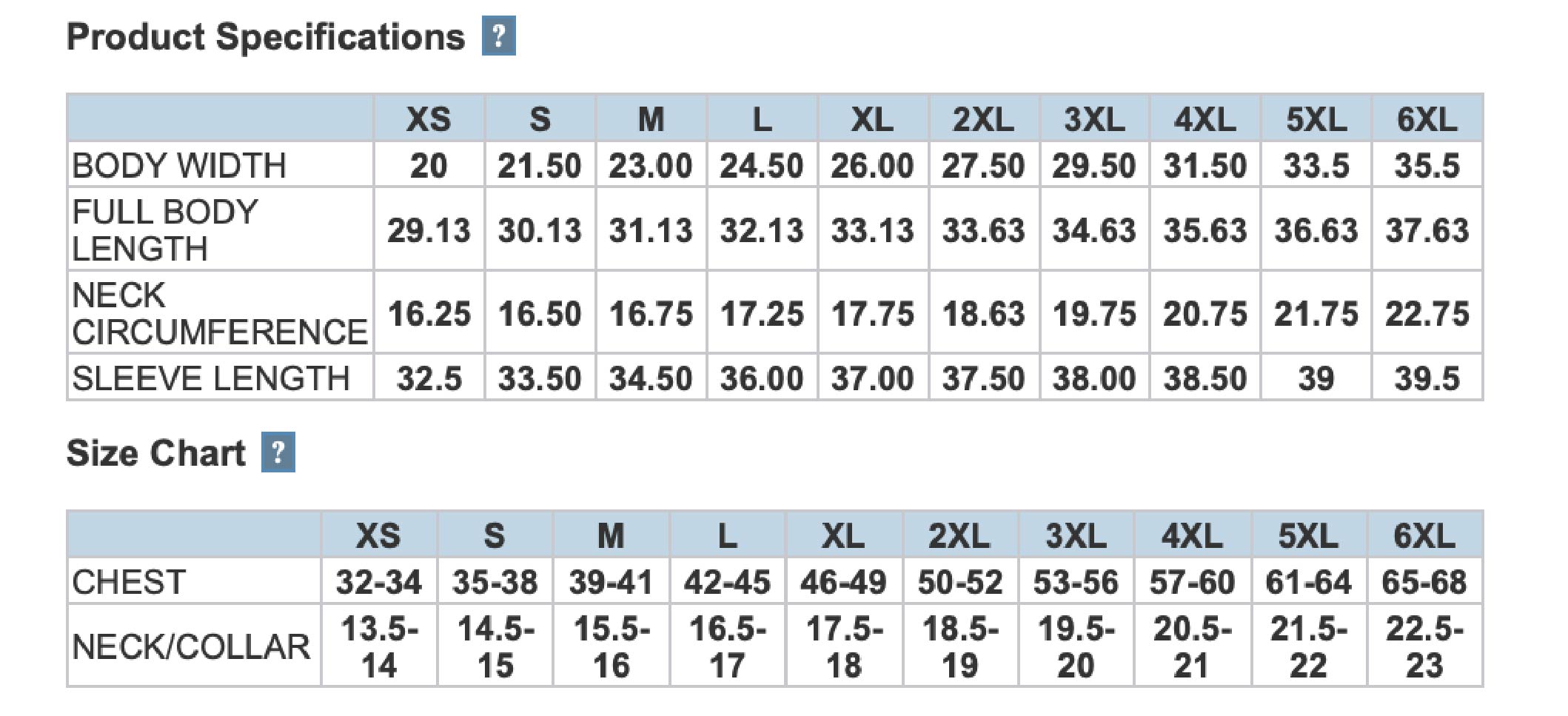 - 2XL+$2.00, 3XL+$3.00, 4XL+$4.00, 5XL+$5.00, 6XL+$6.00