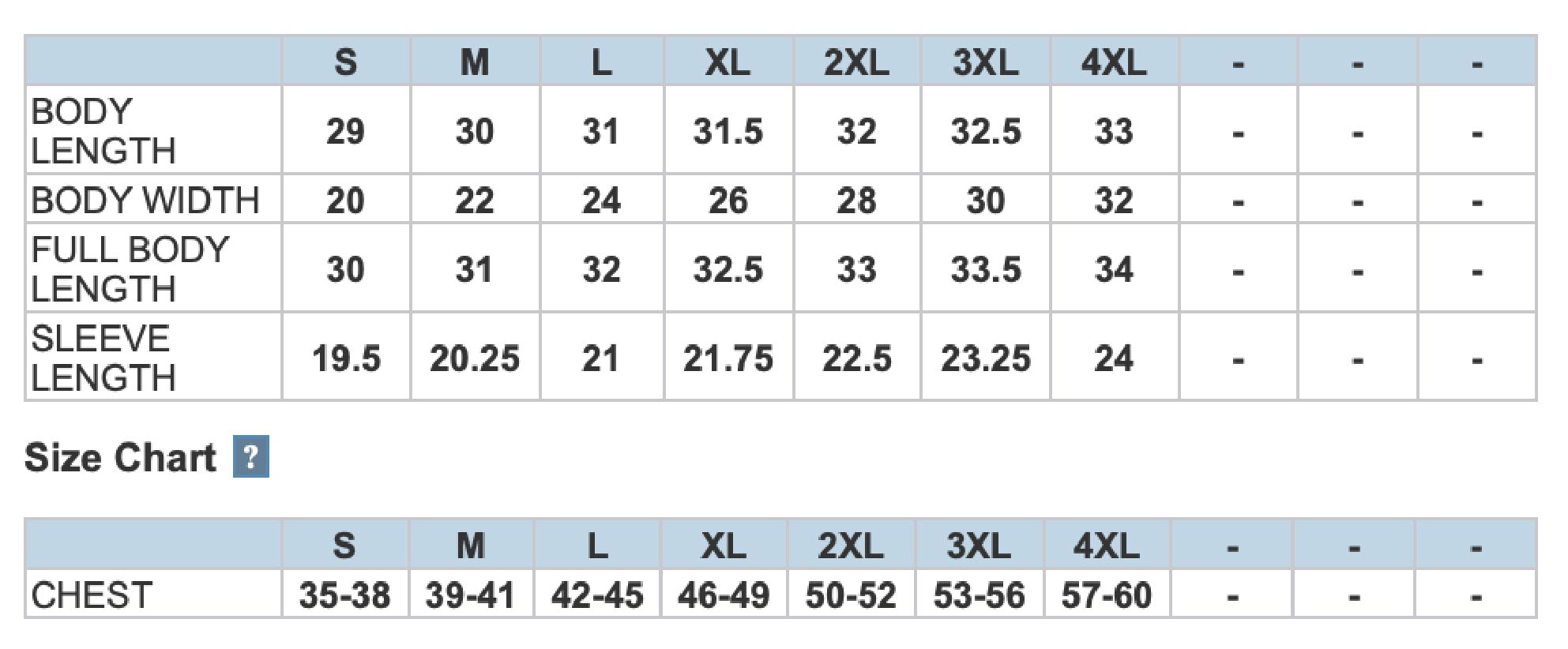 - S, M, L, XL, 2XL, 3XL, 4XL