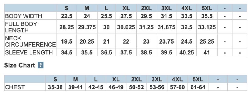- S, M, L, XL, 2XL, 3XL, 4XL, 5XL